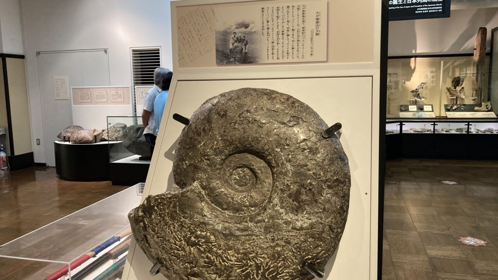 3階には日本で発見されたアンモナイトなどの化石や鉱物などが展示されていた。とても楽しいが、この辺りから疲れてきた。なお、平日なので遠足の子ども達も多数訪れており「色々見すぎて頭痛くなってきた」と言っていた。その気持ち、分からんでもない。