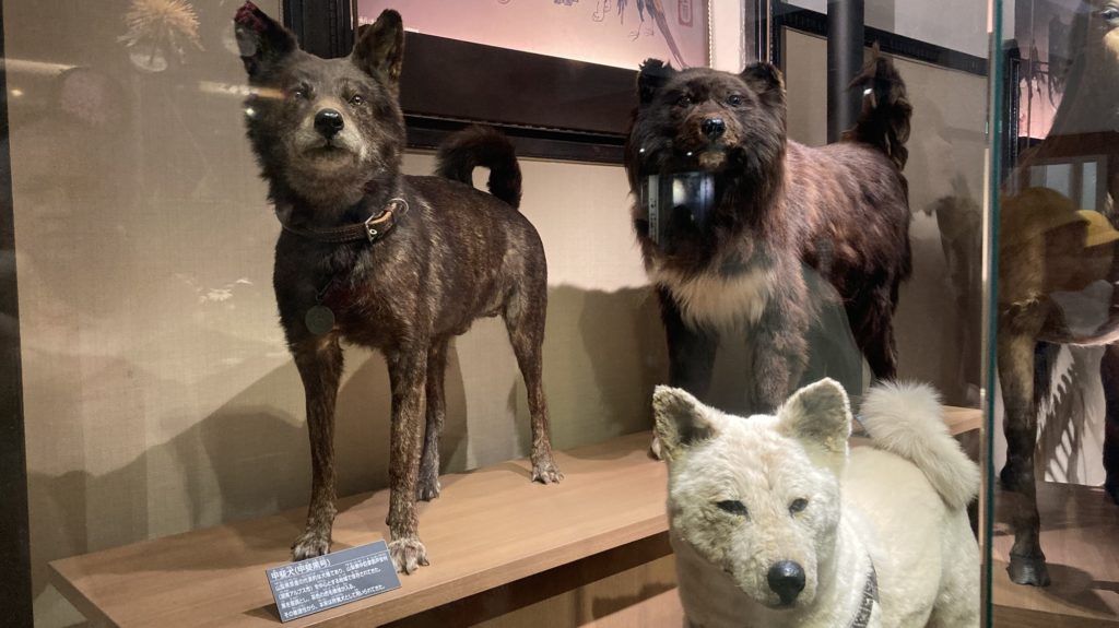 イヌかわ。手前の白ワンちゃんハチ公らしい。後ろ奥は南極探検のジロ。