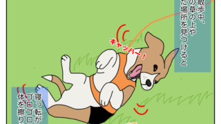 散歩中に寝っ転がってゴロゴロスリスリするナッツ。 かわいい姿ではあるのですが…